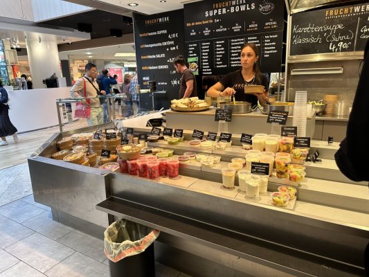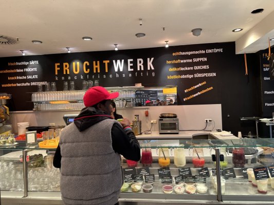If you like healthy and delicious food, then this is the place for you. In Fruchtwerk a large selection of freshly squeezed juices, a variety ... More If you like healthy and delicious food, then this is the place for you. In Fruchtwerk a large selection of freshly squeezed juices, a variety of bowls with chicken and vegetables, with fish and vegetables. It is possible to assemble the bowl yourself by adding your favorite ingredients. Insanely delicious for me was a vegetable pie with an egg. I am ready to come here every day for such delicious food.