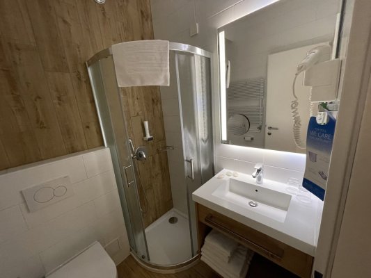 Great hotel for one night. We stayed in a triple room and we were comfortable. Modern furniture, good plumbing and clean bedding. The hotel offers ... More Great hotel for one night. We stayed in a triple room and we were comfortable. Modern furniture, good plumbing and clean bedding. The hotel offers a shuttle service to Ljubljana Airport. There is paid parking right behind the hotel.